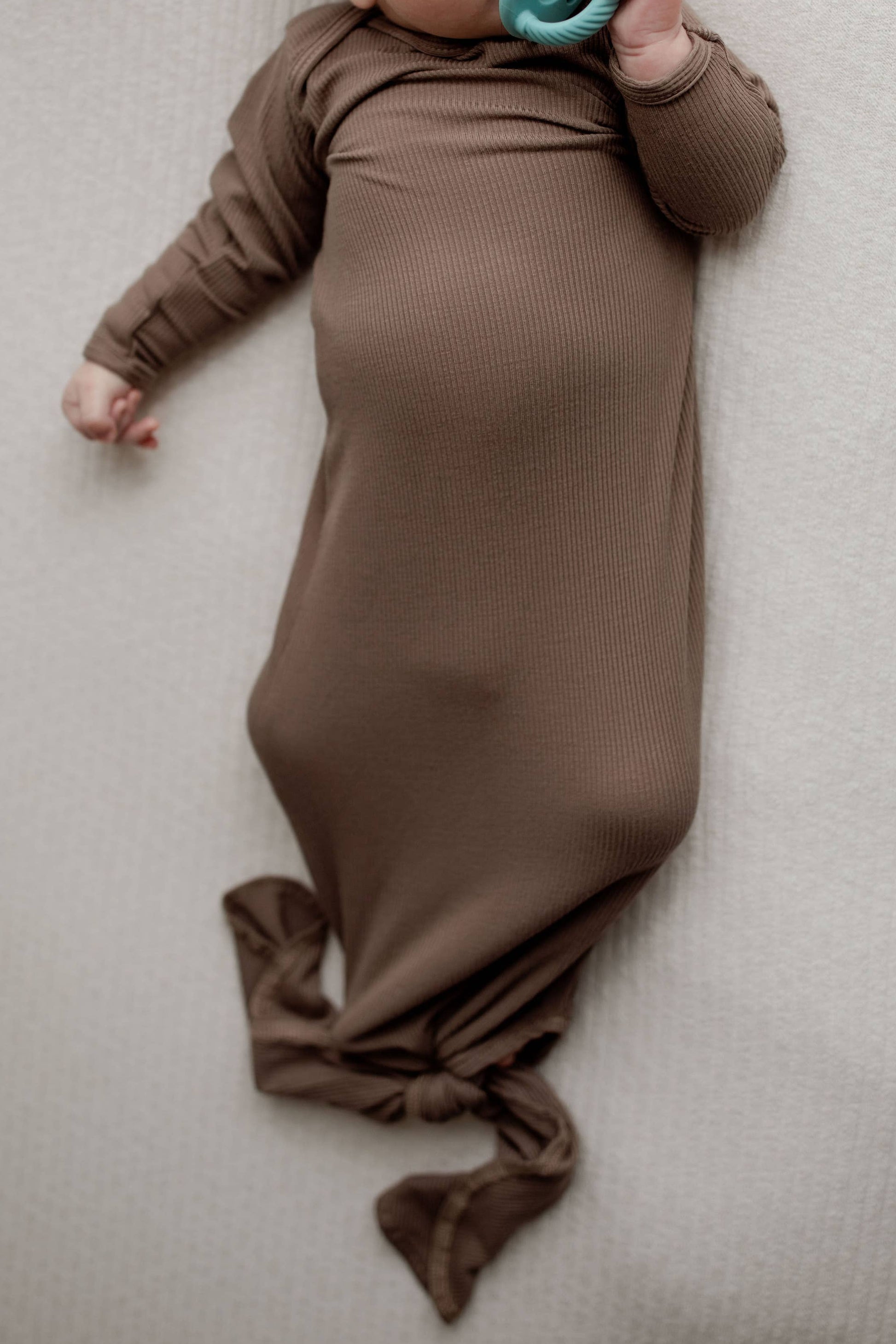 Cocoa Brown Ribbed Knotted Newborn Baby Gown