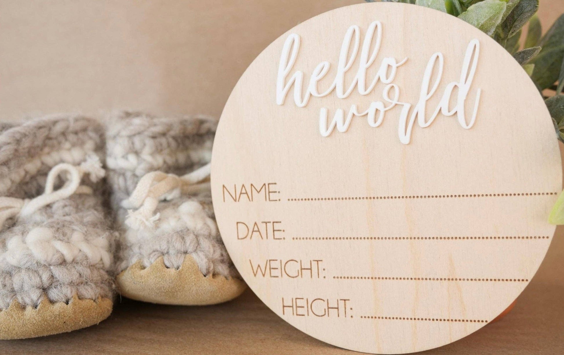 The Hello World Tile is a high-quality wooden circle, expertly laser cut and engraved to commemorate the birth of your baby. Made with 1/8" maple finished Plywood, this approximately 6-inch tile adds a unique and timeless touch to your baby's nursery. Celebrate this special milestone with a durable and beautiful keepsake.