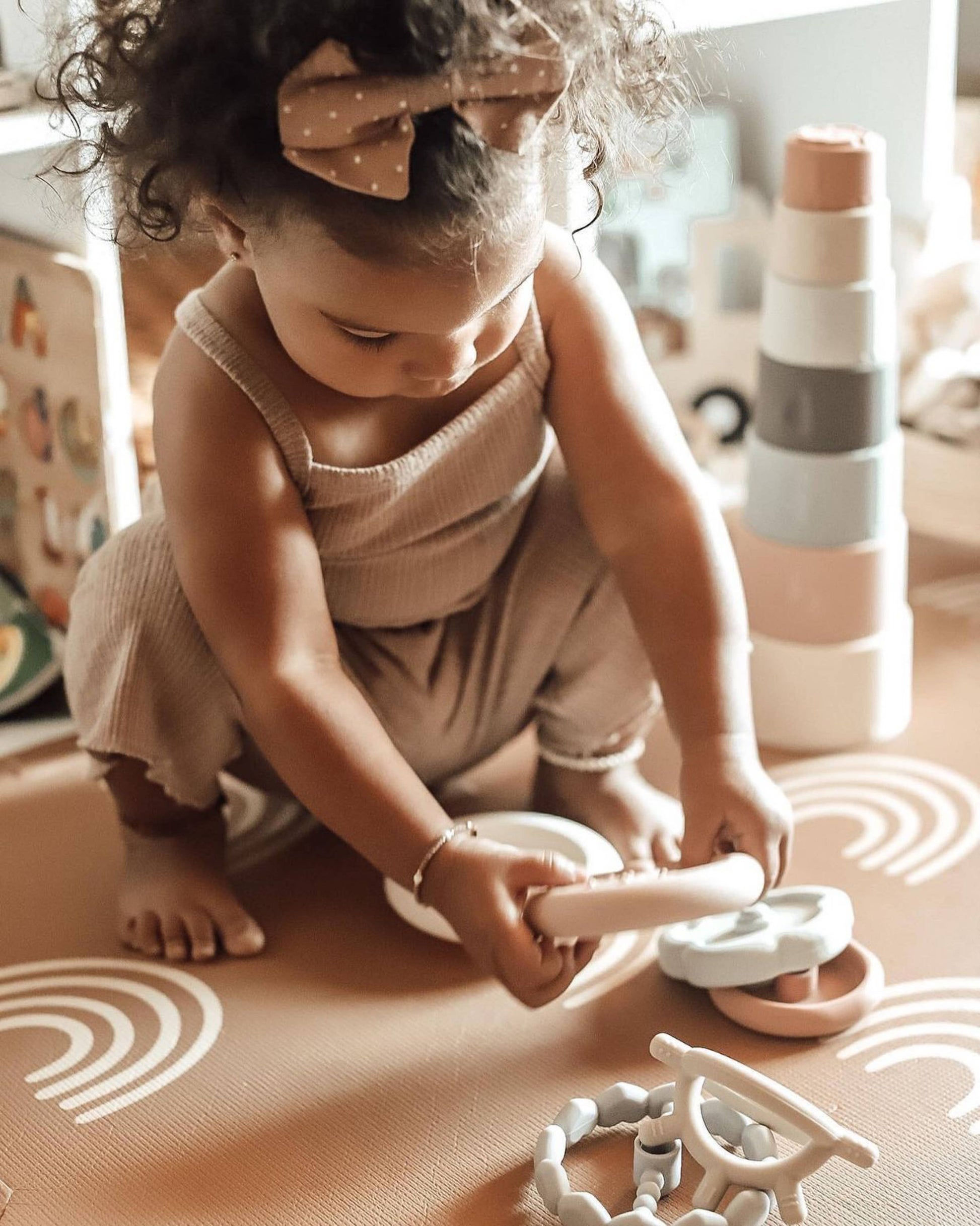Our soft silicone Stacking tower is the perfect multifunctional toy for your baby's development. Designed from 100% silicone it’s lightweight, can be stacked in multiple ways, and is great for practicing coordination and motor skills.